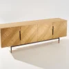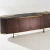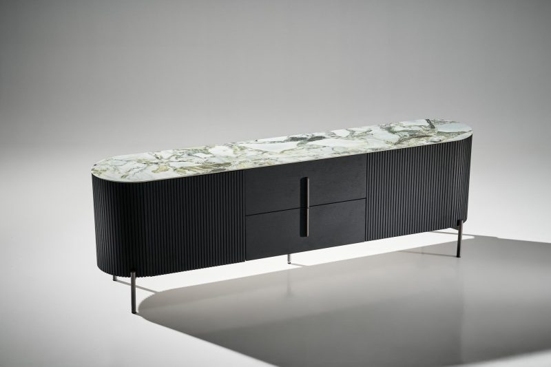 Ο μπουφές Noir συνδυάζει  αισθητική με λειτουργική αρτιότητα. Το καμπυλωτό του σώμα, επενδεδυμένο με κάθετα πηχάκια από φυσικό δρύ, αποπνέει διαχρονική φινέτσα και ζεστασιά. Οι μεταλλικές λεπτομέρειες προσθέτουν μια μοντέρνα νότα και αναδεικνύουν τον σχεδιασμό του, ενώ η επιφάνεια από κεραμικό υλικό προσφέρει αντοχή και εκλεπτυσμένη υφή.