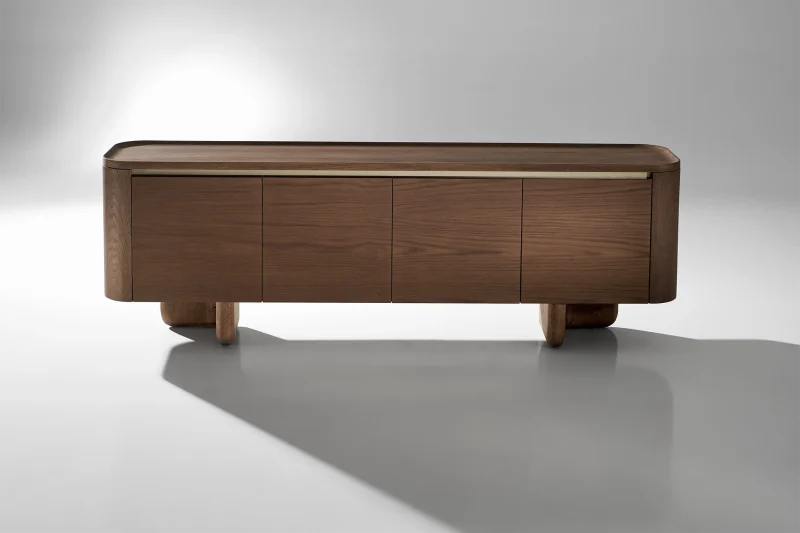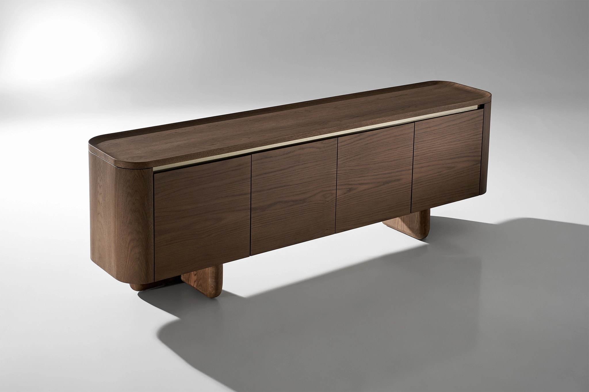 Ο μπουφές ECHO ειναι κατασκευασμένος από δρύ, με πόδια από μασίφ ξύλο ενω οι καμπύλες στις γωνίες ολοκληρώνουν τη σύνθεση, προσφέροντας μια ήπια, χειροποίητη αισθητική . Η μεταλιζέ λεπτομέρεια έρχεται να προσθέσει τη δική της υπογραφή∙ ένα διακριτικό φως που αντανακλά την προσοχή στη λεπτομέρεια και φέρνει μια πινελιά μοντέρνας κομψότητας.