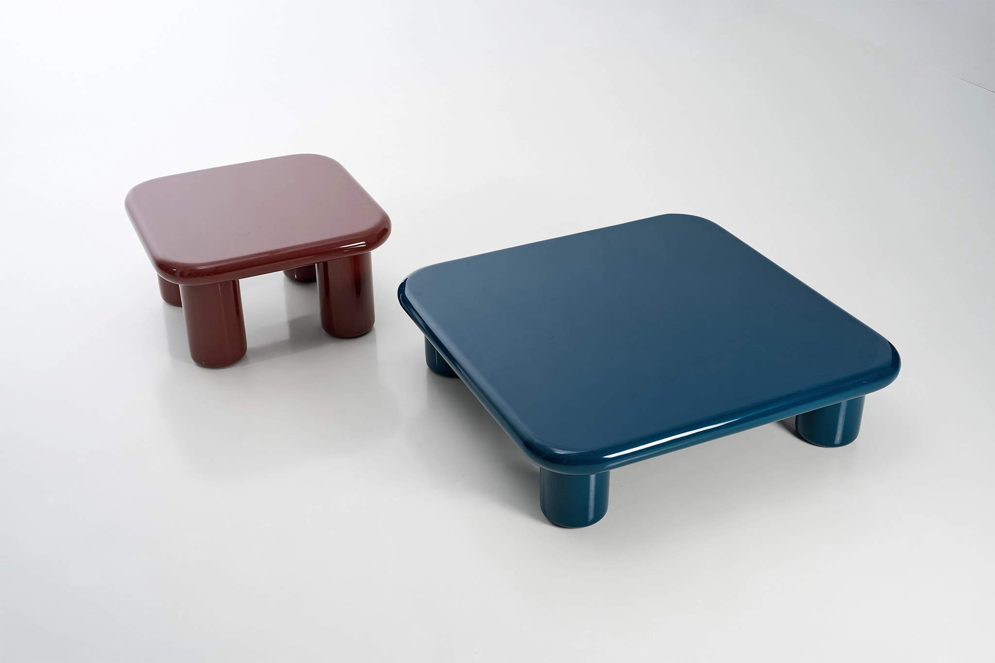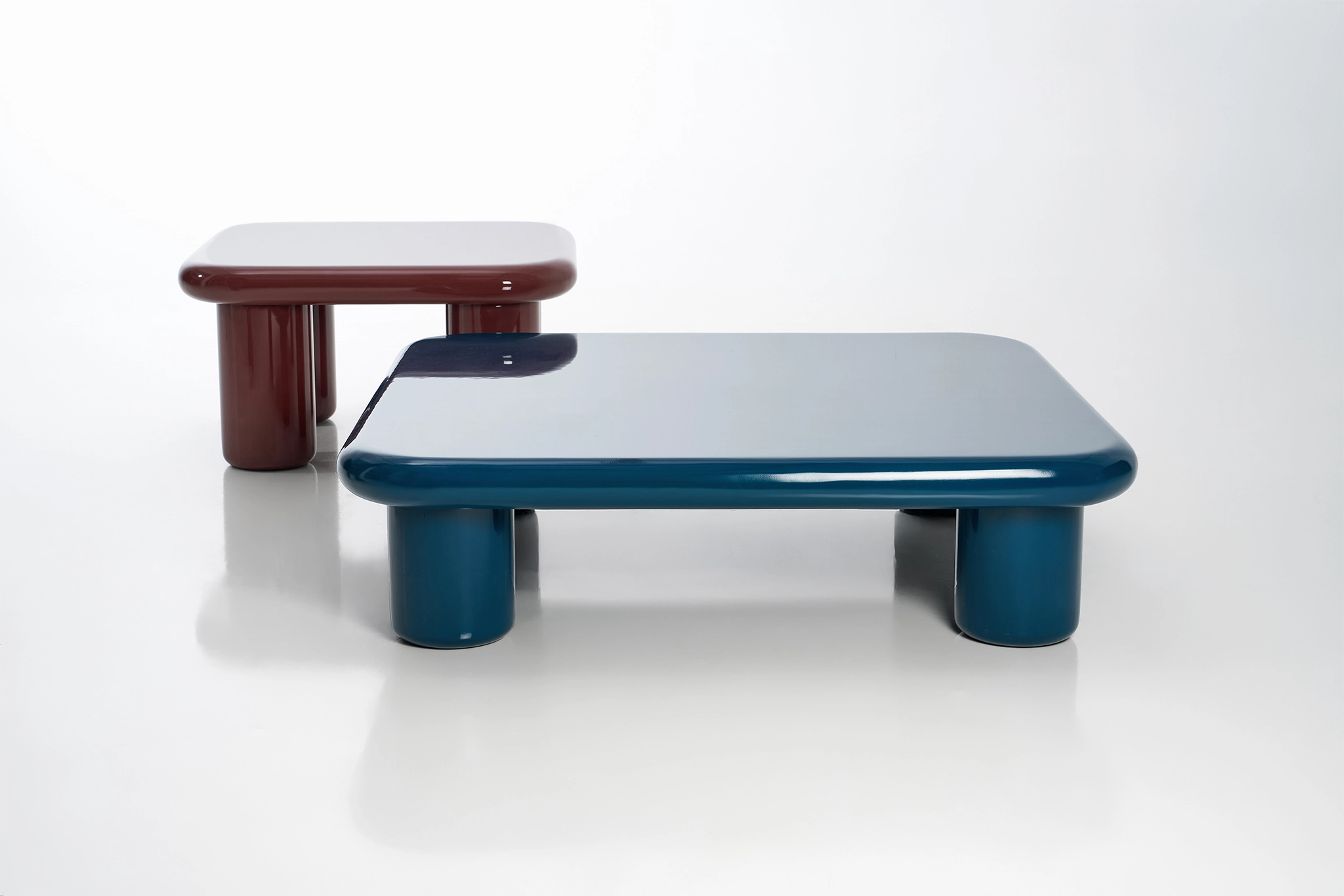 Σετ BOLDY, δύο τραπεζάκια σαλονιού με λακαριστή, γυαλιστερή επιφάνεια. Το χοντρό καπάκι με στρογγυλεμένες γωνίες αναδεικνύει τον μοντέρνο σχεδιασμό, ενώ τα τέσσερα στρογγυλά πόδια προσφέρουν άνεση και στυλ στον χώρο .